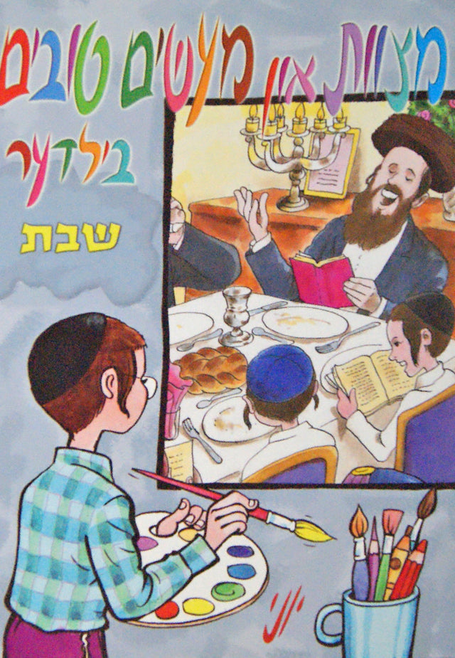 These colouring books are drawn, in his inimitable style, by Yoni Gerstein. Each double-page has a full colour drawing, facing an outline drawing to be coloured in. שבת