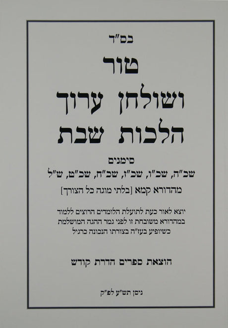 טור שולחן ערוך שבת ה' שכ"ה-שד"מ - הדרת קודש