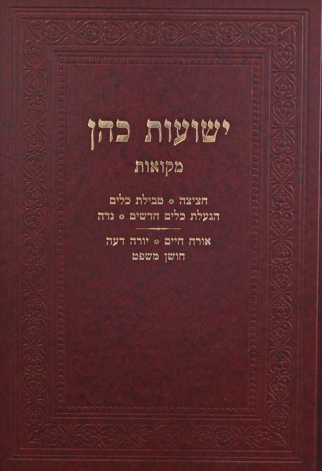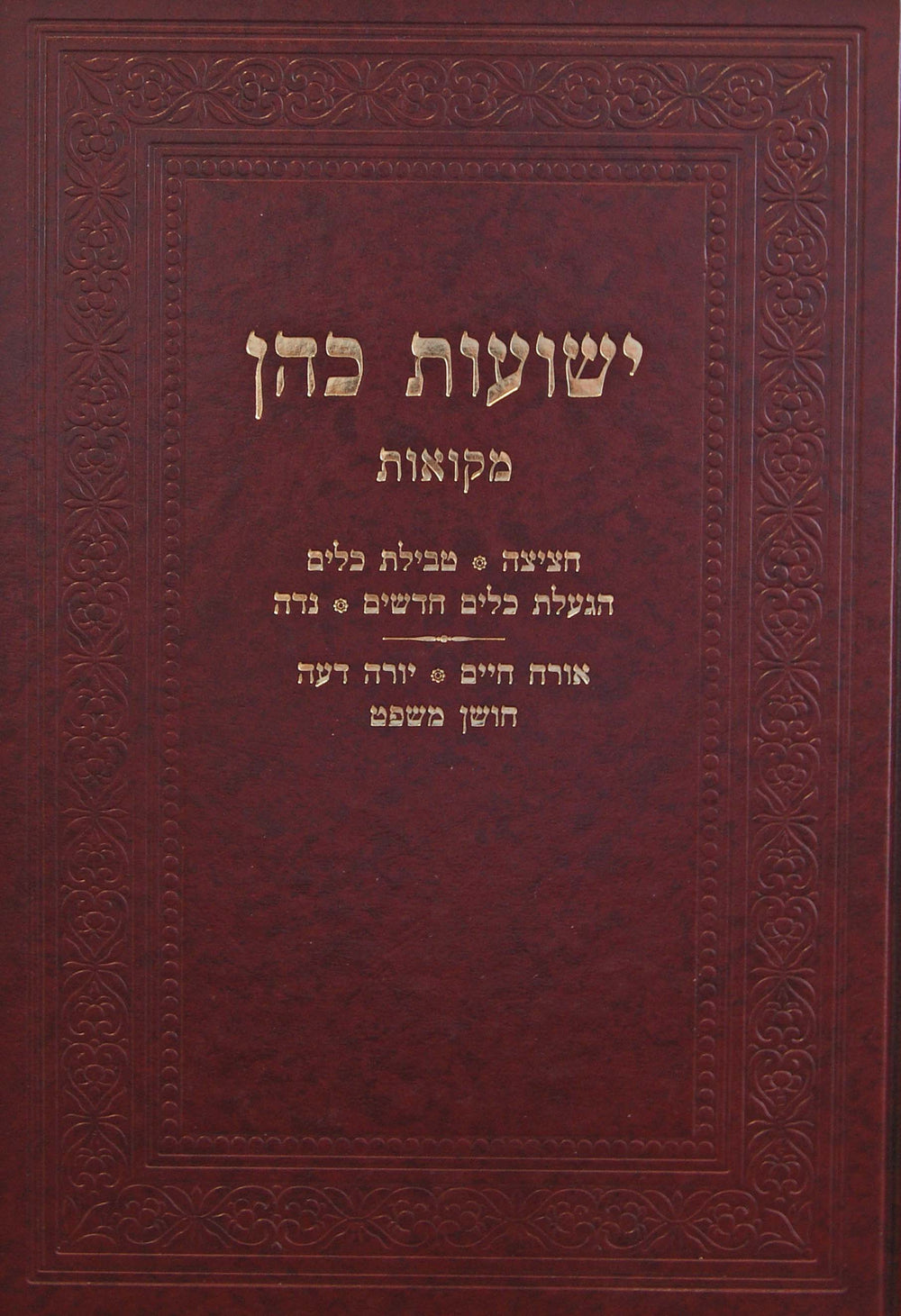 מקואות • חציצה • טבילת כלים • הגעלת כלים חדשים • נדה • אורח חיים • יורה דעה • חושן משפט. יו"ל שנת תשע"ה