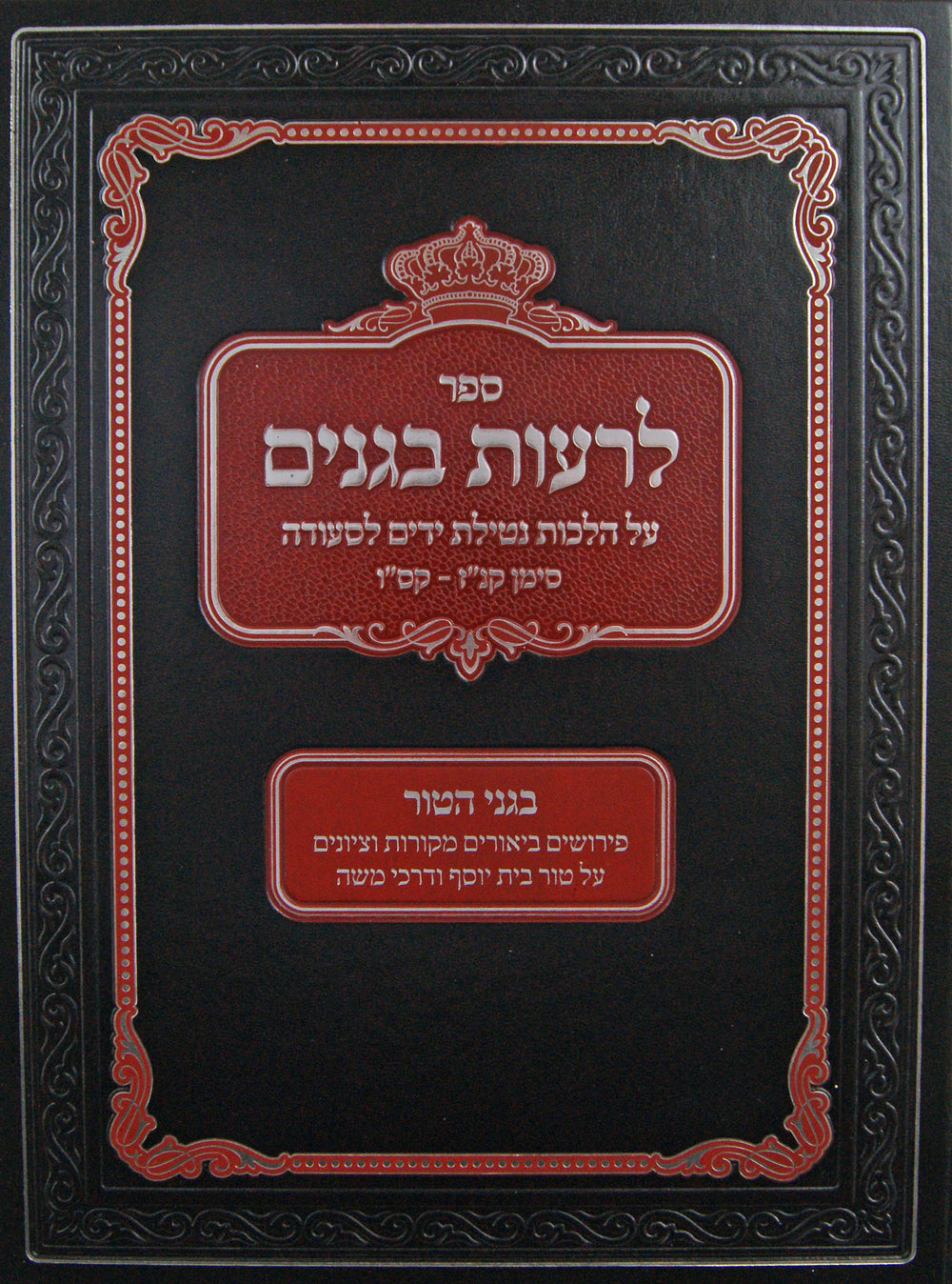 על הלכות נטילת ידים לסעודה סימן קנ"ז-קס"ו חלק "בגני הטור" פירושים ביאורים מקורות על טור בית יוסף ודרכי משה. כולל פתיחת הגן שיפרד לד' ערוגות. ותמצית הגן