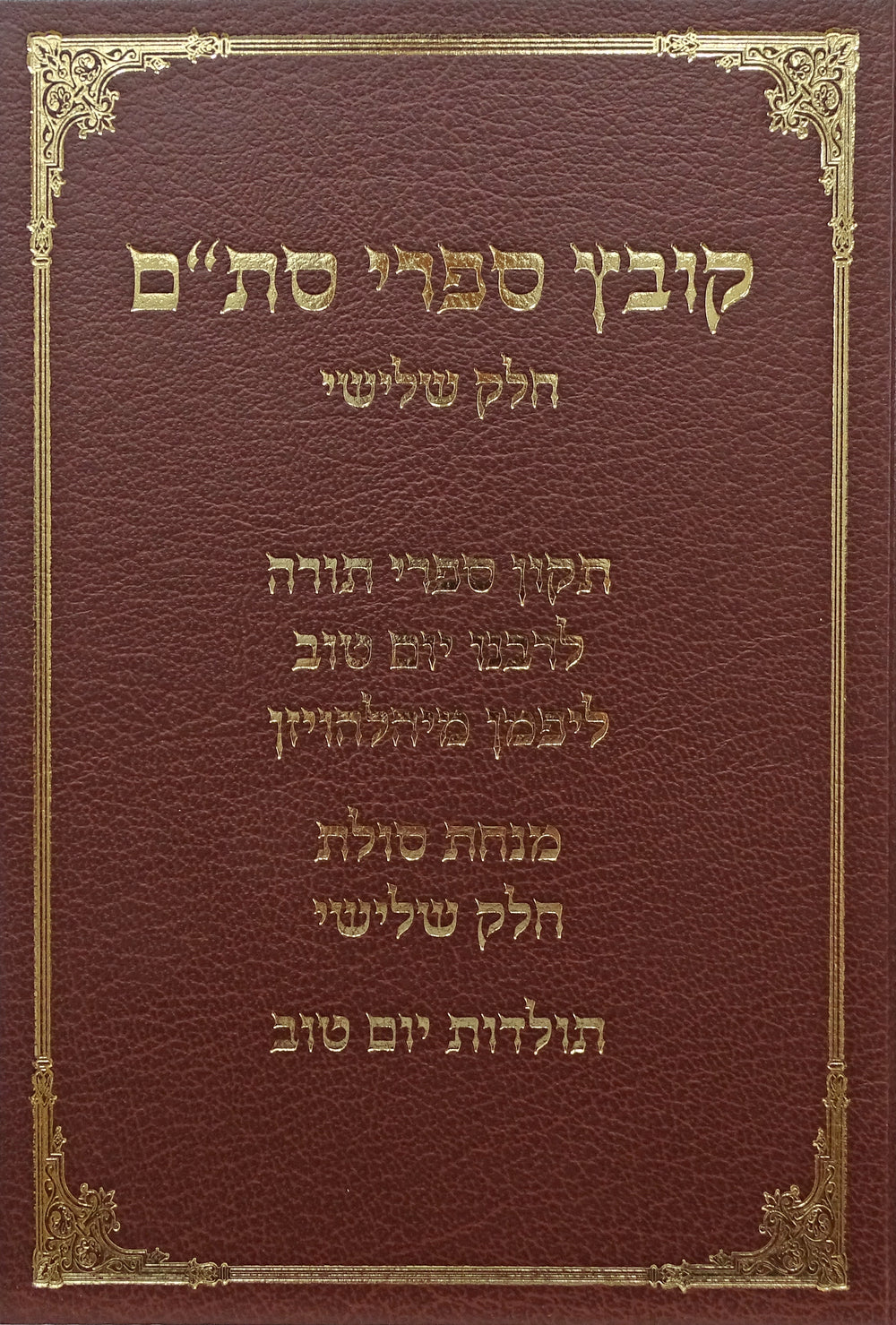 כרך שלישי. מכיל תקון ספר תורה לרבינו יום טוב ליפמן מיהלהויזן ז"ל. יוצא לאור עפ"י כתבי יד עם הערות ומראה מקומות. עם ביאור מנחת סולת חלק שלישי. והם הוספות ומילואים על דברי רבותינו הראשונים בהלכות ספר תורה תפילין ומזוזות עם תולדות המחבר