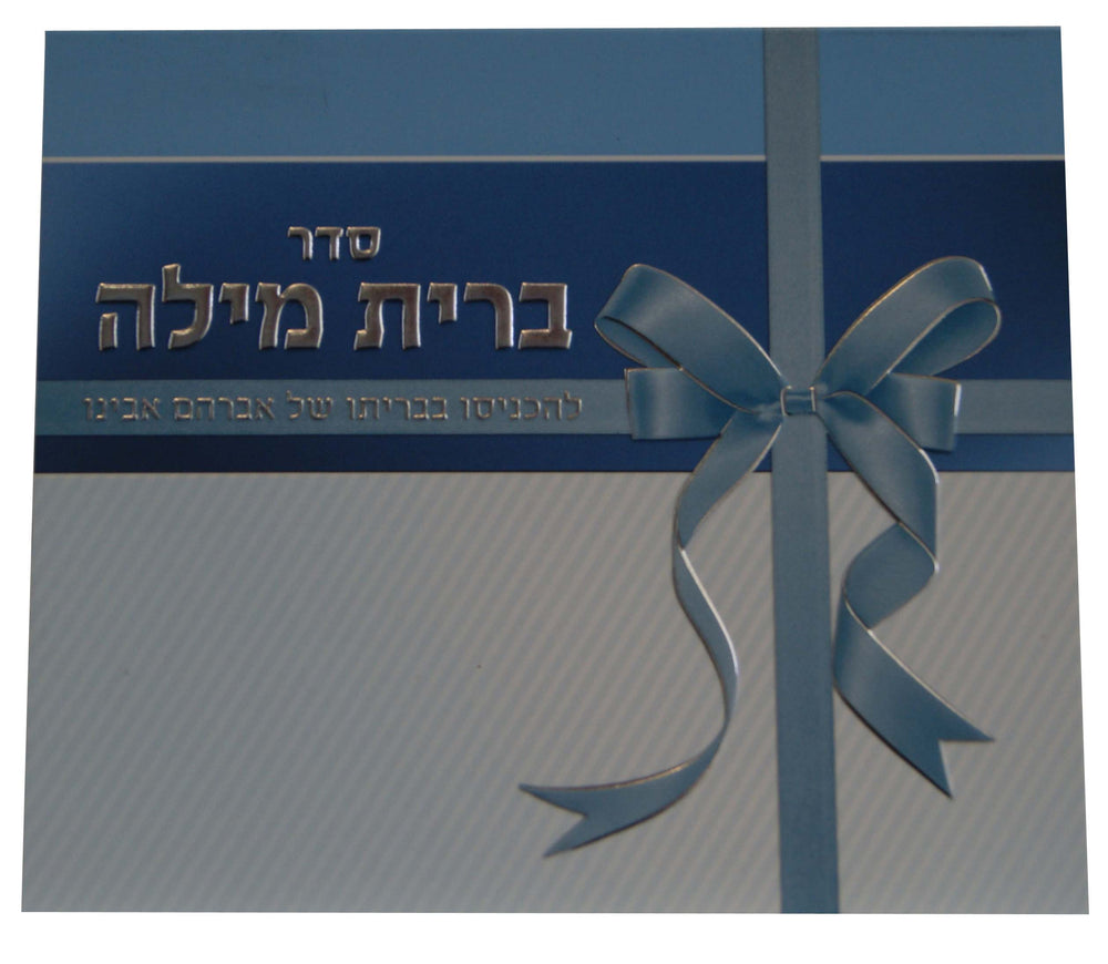 סדר ברית מילה מתקפל בנוסח אשכנז, מודפס בצבע מלא עם הטבעות כסף והבלטות