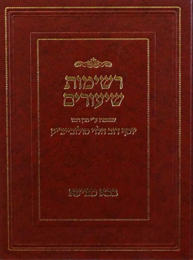 רשימות שיעורים שנאמרו ע"י הרב יוסף דוב סולובייצ'יק על מסכת בבא מציעא. נכתב ונערך לדפוס ע"י תלמידו הרב צבי יוסף רייכמן ובנו הרב משה נחמיה רייכמן