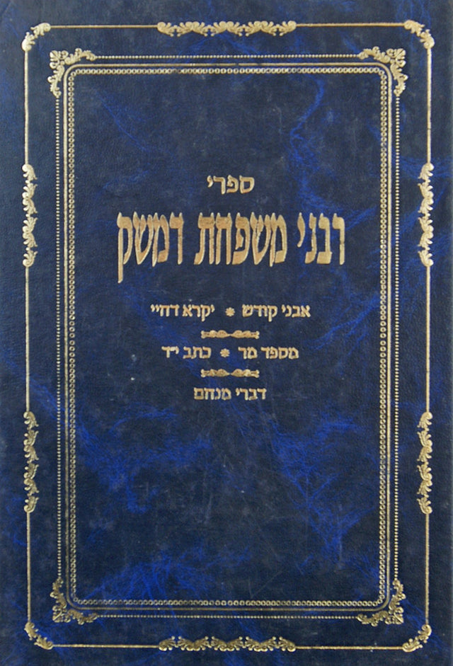 חמשה ספרים נפתחים: אבני קודש – שו''ת יקרא דחיי – דרשות, מאת הרב אליעזר ליזר דמשק. מספד מר – הספד כתב י''ד – הערות, מאת הרב יוסף דמשק. דברי מנחם – דרשות והערות מאת הרב מנחם מנדל דמשק.