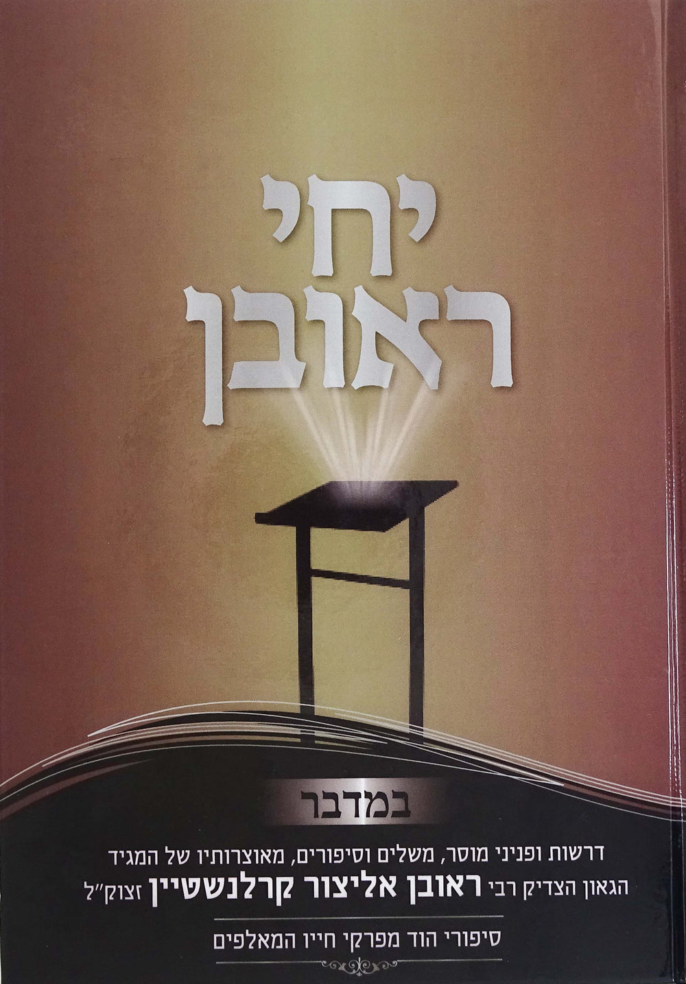 דרשות חוצבות לבבות מלאות זיו ומפיקות יראת ה', בשילוב פניני מוסר משלים ומעשיות משמחי לב ומאירים עיני חכמים, להאיר לבבות בני ישראל לרעות אמונה ולדבוק בהשי"ת תורתו ומצוותיו אשר דלה מתוך מעינו הגדול הגאון הצדיק המגיד רבי ראובן אליצור קרלנשטיין זצ"ל