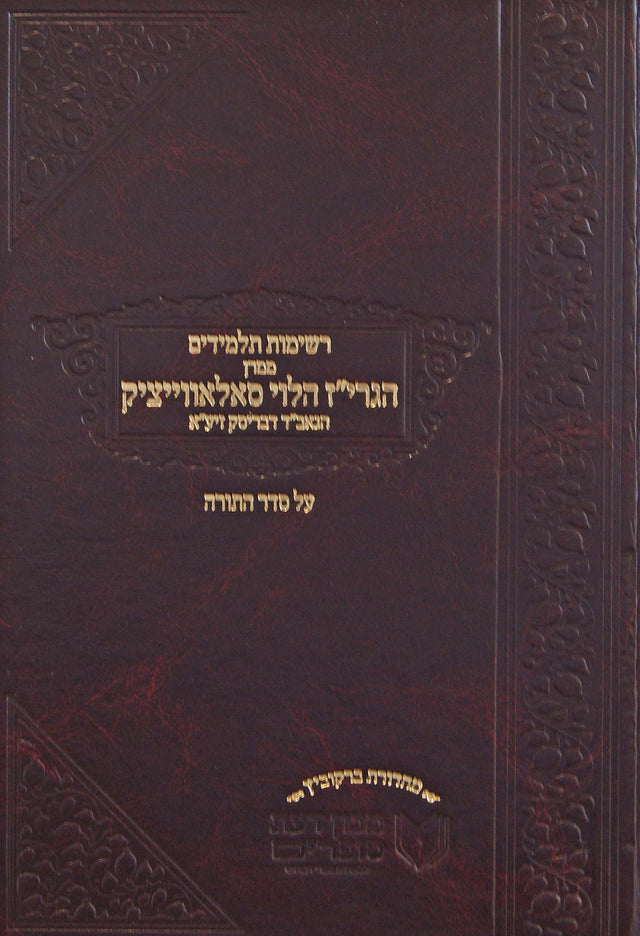 רשימות תלמידים מרבן של ישראל רבי יצחק זאב הלוי סאלאווייציק זי"ע הגאב"ד דבריסק על סדר התורה, ילקוט מרשימות שנשמעו מפי מרן זי"ע, כתבי תלמידים ותלמידיהם, ספרים ואסופות, כולל חידושים רבים שלא באו בדפוס עד עתה