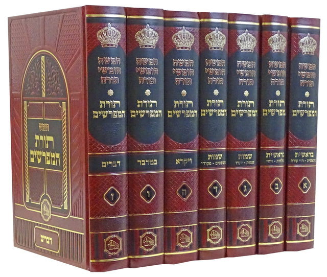 חמשה חומשי תורה עם תרגום אונקלס ופירוש ראש המפרשים רש"י ז"ל. כולל ששה ועשרים ספרים מהמאורות הגדולים רבותינו הראשונים והאחרונים גדולי הפוסקים והמפרשים מפרשי הש"ס והשולחן ערוך. יוצאים לאור מחדש מוגהים ומתוקנים על פי כתבי יד ודפוסים ראשונים