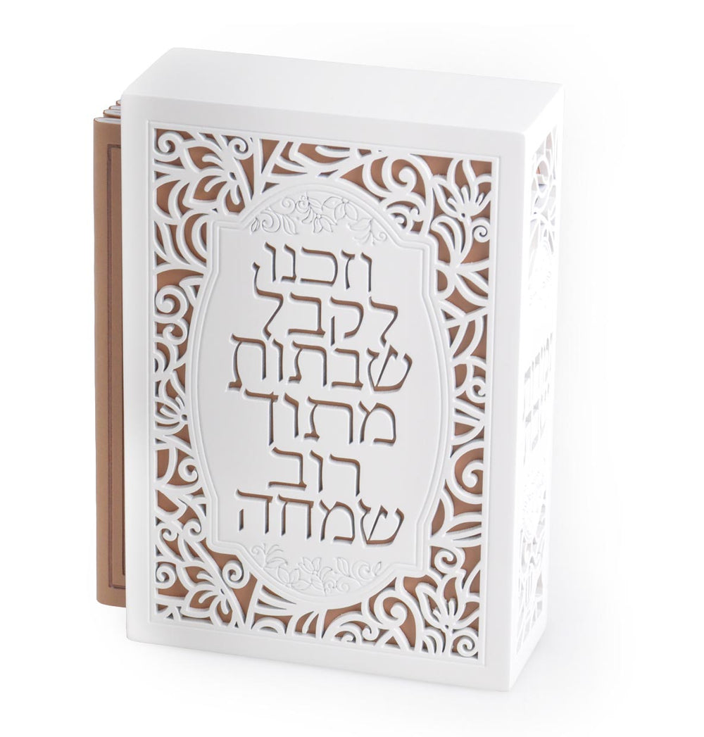 מעמד עץ יוקרתי וחגיגי לזמירות שבת המאגד 6 זמירות בכריכת דמוי עור בעיצוב מיוחד