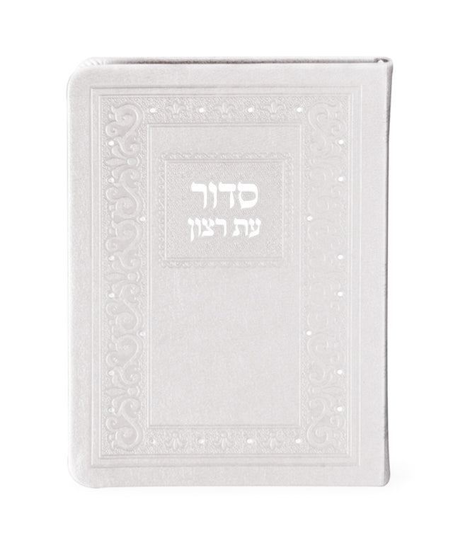 סדור עת רצון עם תהלים דגם קלאסי 17 ס"מ לבן חצי קשה דמוי עור- שמחונים