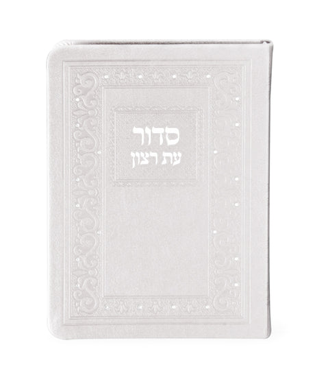 סדור עת רצון עם תהלים דגם קלאסי 17 ס"מ לבן חצי קשה דמוי עור- שמחונים