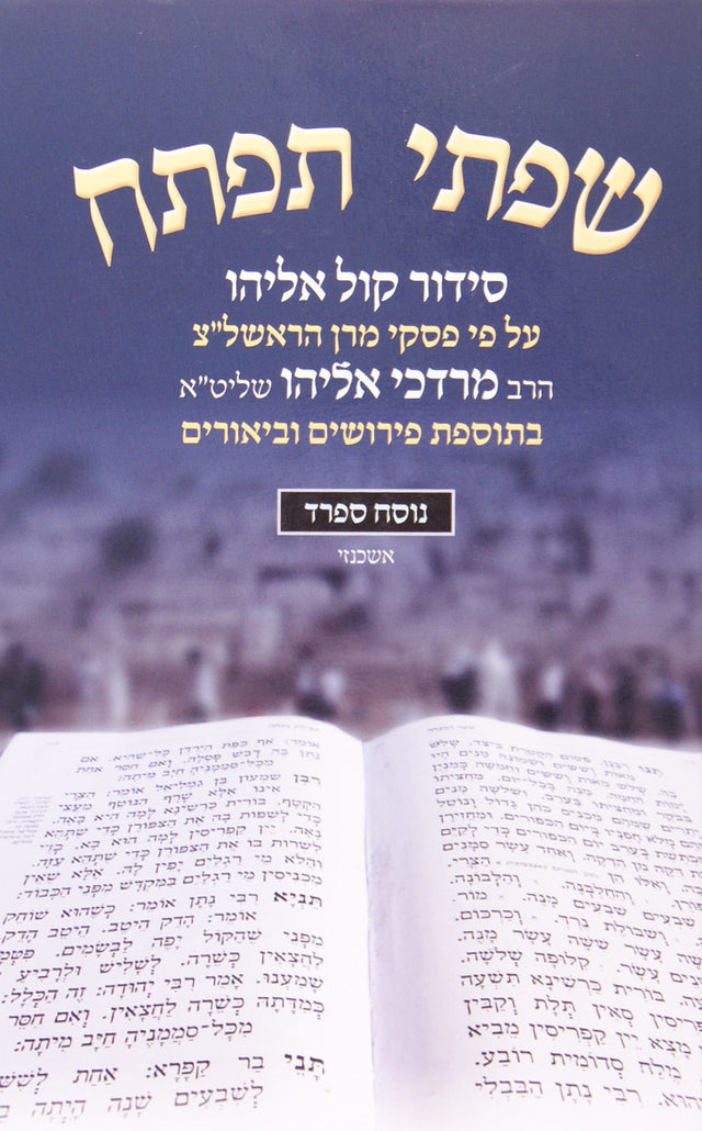 סידור קול אליהו על פי פסקי מרן הראשון לציון לימות החול בנוסח ספרד לבני עדות אשכנז. כולל תוספת פירוש רעיוני מאת הרב שמואל אליהו, רבה של צפת.