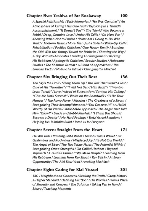 This is the compelling story of a guide and teacher who blended greatness and modesty, piety and humor, a deep aversion to anything not “emes” with an amazing ability to see the good in all. As we read one unique story after another, we’ll see why talmidim adored him, friends revered him, and his entire community felt fortunate to have him in their midst. And we will discover what a difference a great rebbi can make.