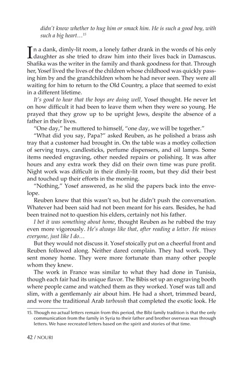 The orphan, raised by his grandmother, caught in an unusual custody battle that only a bet din can resolve. The prosperous businessman building up a family and a community on the quiet streets of Bensonhurst, lending money to others so that they can open a business that will compete with his own. The generous philanthropist cleaning up the synagogue he helped to build. The indomitable optimist who pulled himself out of poverty, but who always knew where his success really came from. This is Nouri's story He was a man of many names: Ezra, Nouri (which, appropriately, means "my light"), Isidore, Izzy. He was a larger-than-life personality, helping to create a larger-than-life community, and it needs a larger-than-life book to tell his story. This is Nouri's book. Nouri: The Story of Isidore Dayan, and the growth of a vibrant community in America focuses on one of the most intriguing personalities of the modern Jewish world. The tale spans almost a century, includes two World Wars, and features a panoramic background ranging from Baghdad and Damascus to Brooklyn, from Czechoslovakia to Baltimore to tiny Vineland, New Jersey. In the pages of this biography-that-reads-like-a-novel, you will meet famed gedolim: Hacham Murad, Nouri's mentor and eventually his father-in-law; Rav Avraham Kalmanowitz, the Mirrer Rosh Yeshiva, whose efforts and care for Klal Yisrael included the Sephardim of America; and Rav Yitzchok Hutner, who, together with Nouri's daughter and son-in-law, underwent a harrowing terrorist plane hijacking. You will meet men who create businesses built on generosity and adherence to Jewish values; Sephardic grandmothers filled with the unyielding strength of simple devotion; and a new generation of young Sephardim determined to reach - and teach - higher levels of Torah learning. And, of course, you will meet Nouri, the quiet, unassuming, and friendly man who became a legend in his community. The young, poor orphan becomes a wealthy businessman: it's almost a cliche. But in Nouri's story there are no cliches. There are only remarkable instances of Divine Providence, self-sacrifice, devotion, and an almost extraordinary level of chesed and caring - a true life odyssey that reads like a novel.