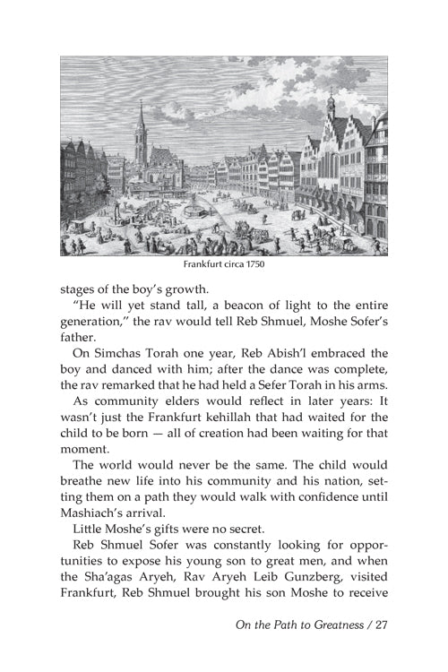 It would spread across the region, giving the kehillos of Austro-Hungary an example, a kehilla after which they could model themselves: it was a style of rabbanus, an approach to living. He showed the blessing of a yeshiva, the value of talmidei chachamim- and also, the glory of the ordinary citizens and their role, the preciousness of their minhagim.