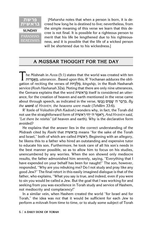 | Receive every volume of the current Daily Dose of Torah series 2 weeks before the beginning of that volumes Torah study! Order now and never miss a volume. Click HERE for more information and to sign up. |