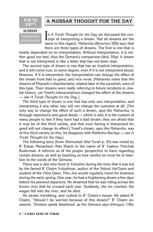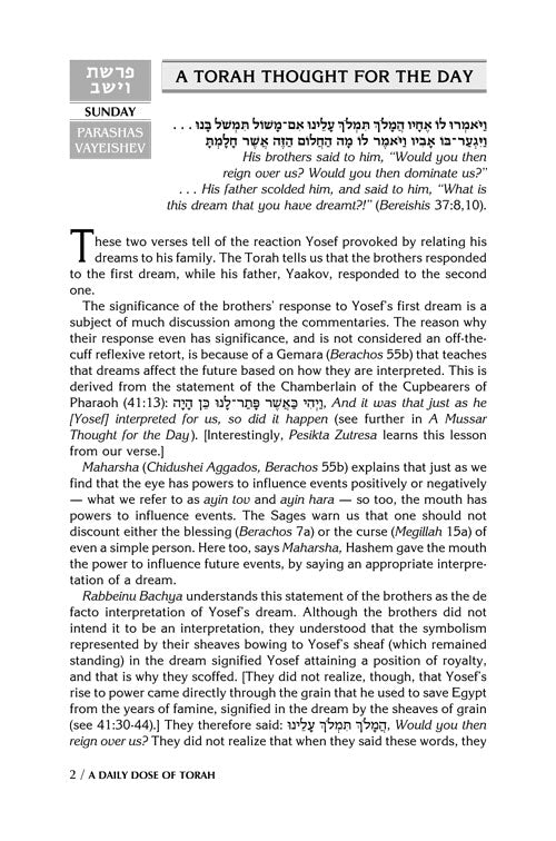 This volume provides 4 weeks - that's 28 days - of provocative and enjoyable Daily Doses of Torah study, for the weeks of Vayeishev through Vayechi.
