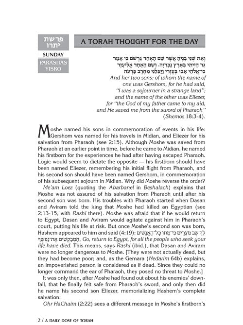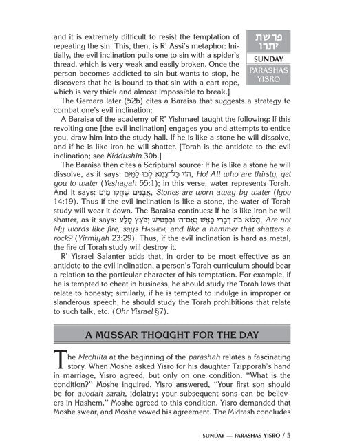 This volume provides 4 weeks - that's 28 days - of provocative and enjoyable Daily Doses of Torah study, for the weeks of Yisro through Tetzaveh.
