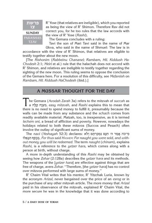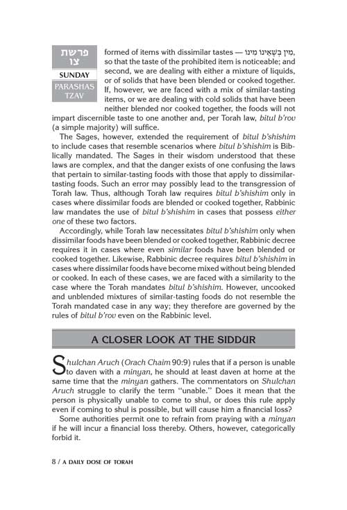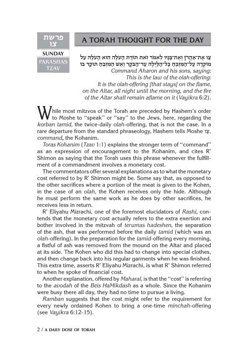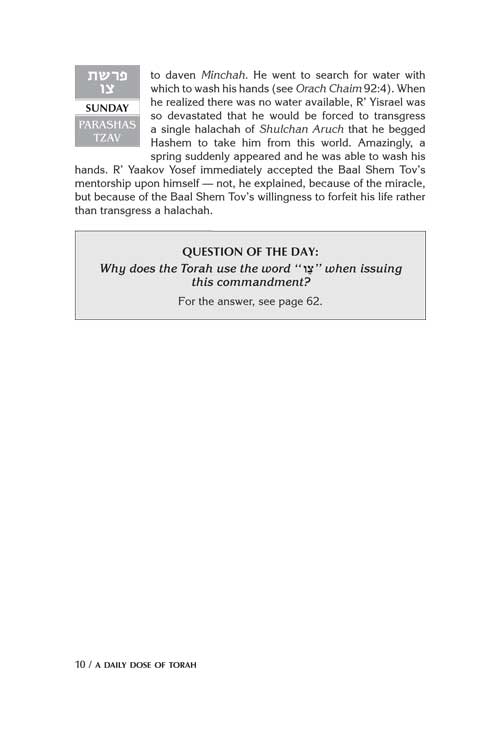 This volume provides 4 weeks - that's 28 days - of provocative and enjoyable Daily Doses of Torah study, for the weeks of Tzav through Metzor.