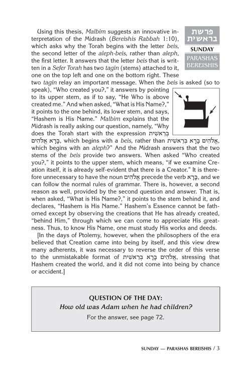 This volume provides 4 weeks - that's 28 days - of provocative and enjoyable Daily Doses of Torah study, for the weeks of Bereishis through Vayeira.