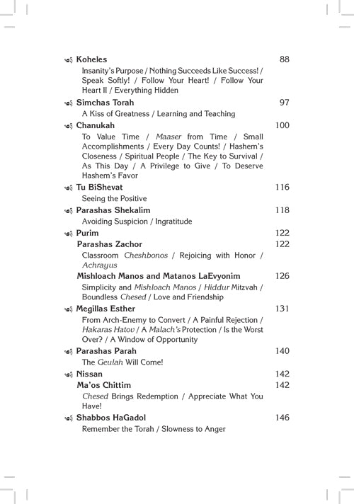 In this collection, based on Rav Pam’s shiurim, and arranged according to the Yamim Tovim, we can almost hear Rav Pam’s voice: perceptive and sensible, humane and wise. This is a book that will enrich every one of our Jewish holidays, one that belongs in every Jewish library.