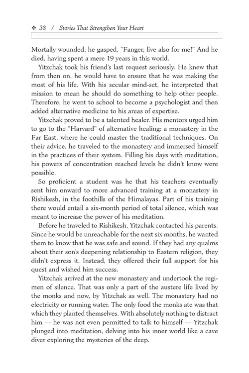 Rabbi Binyomin Pruzansky knows how to find a great story, and how to tell a great story. Just ask any of the thousands of readers who eagerly await his marvelous collections of true stories. In Stories That Strengthen Your Heart, we will hear about how a little boy's prayers and simple trust saved his "miracle" baby brother, and how a stranded air passenger listens to Hashem's "message" and gets the flight, and the faith, he was missing. In a hospital room and on a boardwalk in Florida; from a monastery in the Far East to a professional basketball court – here are more than 50 stories to inspire us, entertain us - and give us strength when we need it!