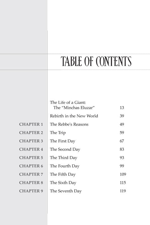 The Minchas Eluzar longed to meet the Saba Kadisha. Finally the time came. This book is a translation of the diary of that trip and visit, and its aftermath. Written by Rabbi Moshe Goldstein, a distinguished chassid of Munkacs, who accompanied the Rebbe, it is a rare opportunity to become acquainted with two giants of our past. The warmth of their relationship and their passionate endeavors to prepare the way for the coming of Mashiach cannot fail to elevate and inspire readers. This richly illustrated book includes many previously unpublished photos. In addition, the original text is augmented with biographies of the Minchas Eluzar and the Saba Kadisha.