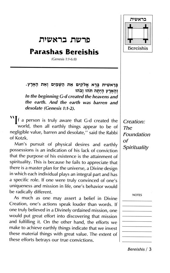 Thoughts and lessons by the author of the best-selling Living Each Day. Filled with beautiful ideas, piercing insights, and provocative anecdotes - based on lessons from each weekly Torah reading - it will enrich the life of every reader.