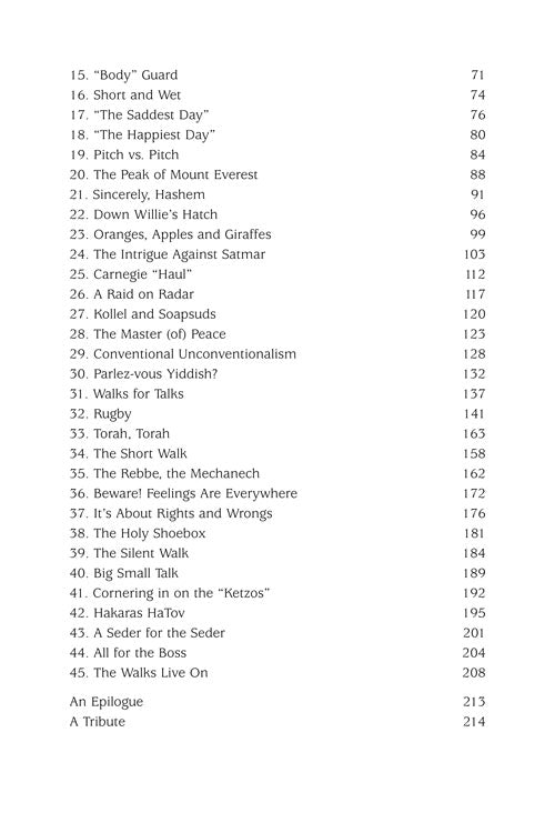 Join the inner circle of Rabbi Avigdor Miller’s disciples, as they accompany him on his daily walk. Seen through the eyes of his talmid, Rabbi Mordechai Dolinsky, this was a time when Rabbi Miller could engage in meaningful discussion in a casual context – away from the classroom or podium so closely associated with his public persona. In this intimate setting, he shared his thoughts and insights, and often pondered verses from Mishlei (Proverbs).