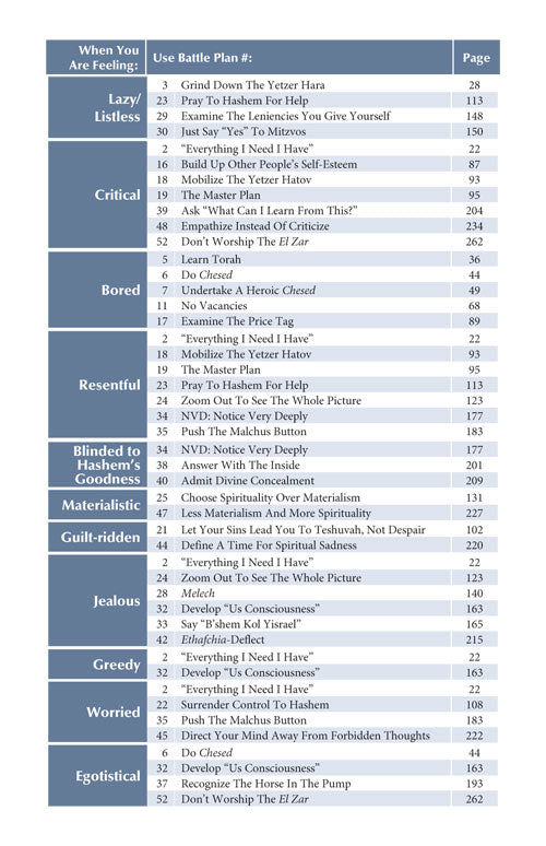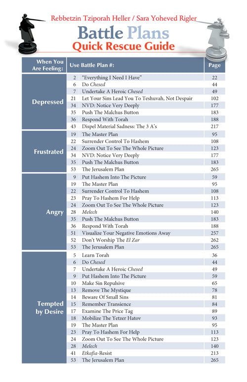 Battle Plans offers us a stunning combination of Torah wisdom, practical advice, true-life stories, and more than fifty "strategies" of war. As we implement these strategies, which have been recommended by our Torah sages, we will see that we can beat the yetzer hara!