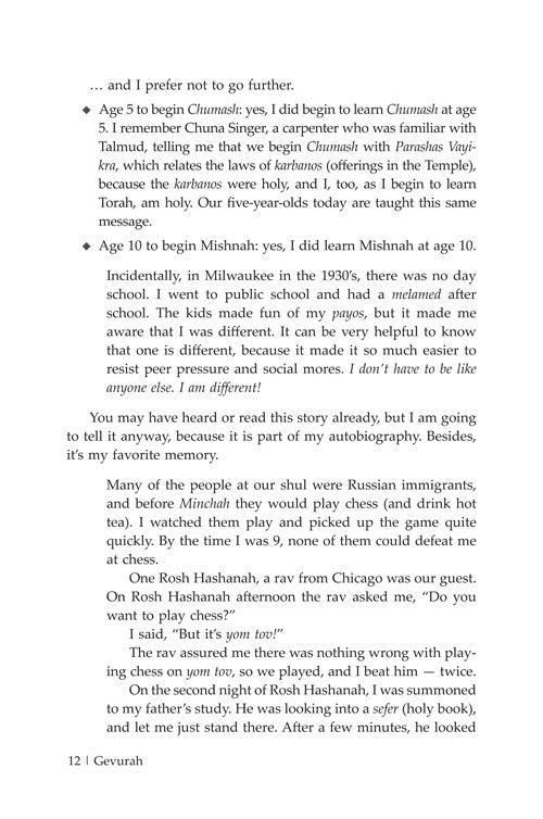 Autobiography. Tells of the young American being brought up in Milwaukee in a home steeped in Chassidic tradition; the medical student at a time when a Shomer Shabbos doctor was a rarity; the author (of 61 books!); the psychiatrist who changed the way we look at mental disorders. More than an autobiography, though, Gevurah offers Rabbi Twerski's wide-ranging perspective on our own concerns such as the contemporary challenges of childrearing, the importance of prayer in our lives and how to achieve authentic Torah values.