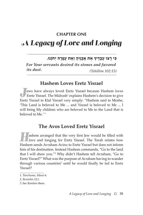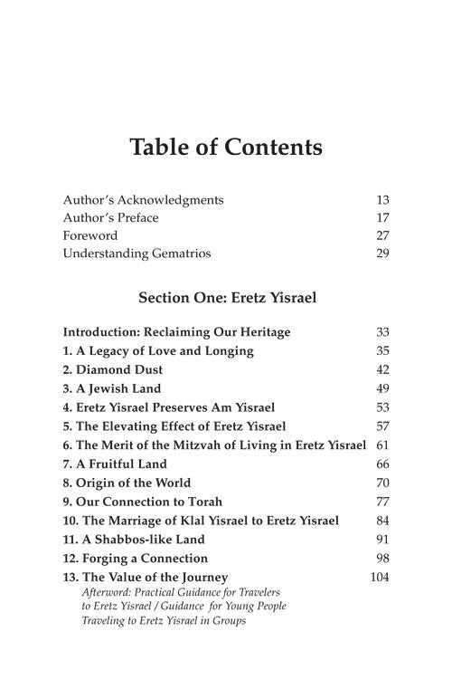 Jews the world over know that Eretz Yisrael is a precious treasure. They long for a real connection to the Holy Land, but sometimes they lack the ability to feel that bond. The stones of the Kosel seem cold and hard to some; the streets of Yerushalayim, ordinary. Even those who can sense Eretz Yisrael's spiritual power often thirst for a deeper, more meaningful relationship with the land.
