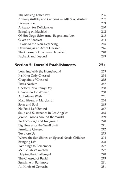 Chessed is the gem that adorns every Jew, a gem that is found, not in a locked vault or jewel case, but in our hearts and deeds. This book will inspire us, and also guide us, in polishing our own jewels of chessed to a brilliant and beautiful shine.