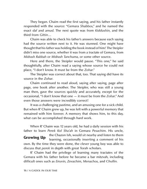 When he was just a boy, at recess he played a unique Gemara game that he made up himself.