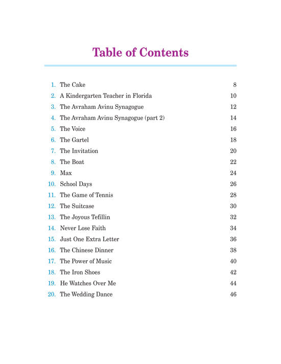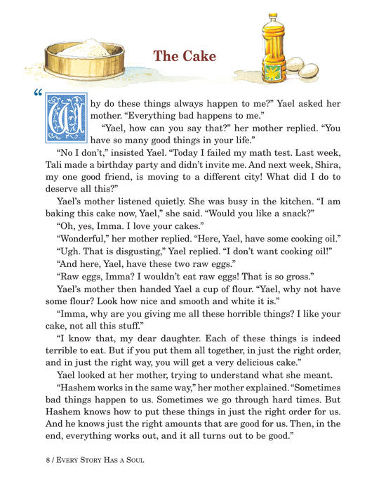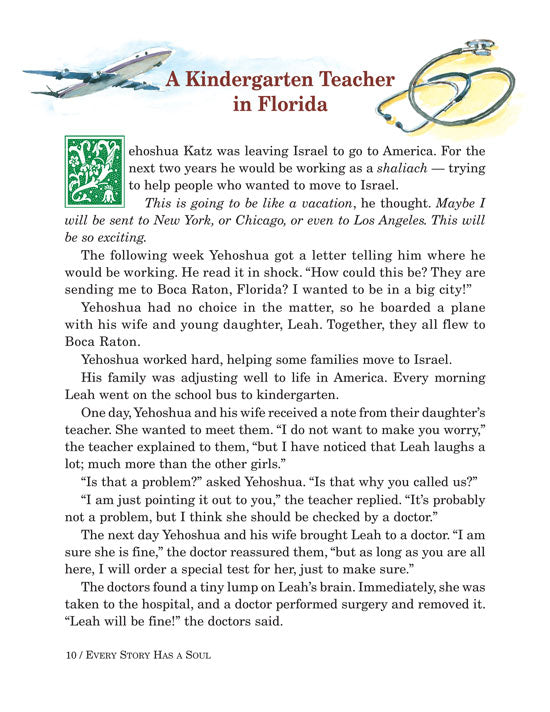 A mysterious visitor appears to nine poor Jews to help complete a Yom Kippur minyan. A voice from thin air warns a teenager how to survive a fatal concentration camp selection. A young girl learns how to really appreciate her difficulties. A dream in the night saves a couple from a doomed sea voyage. These are just four of the twenty moving, illustrated accounts contained in Every Story Has a Soul, by ArtScroll's celebrated author, Shmuel Blitz. Young readers will thrill to the real life stories of hashgacha pratis, pure faith, and answered prayers.