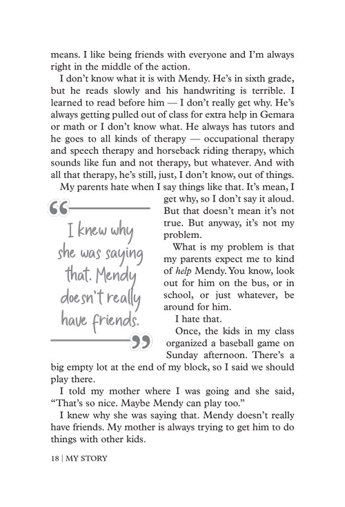 In My Story, 18 boys and girls share their stories in their own words. You’ll meet the new kid in the class, the kid who has two homes, and the kid who does something she never thought possible. You’ll hear about medical challenges, sibling fun and fights, summer camp and school plays and the things kids want most in the world.