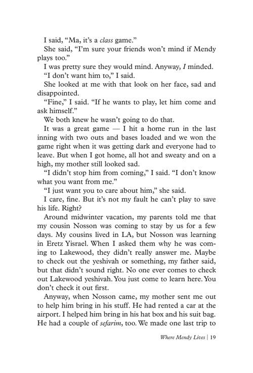 Mordy never does what he’s supposed to do, and he gets all this nosh and prizes. Maybe I should stop doing my homework and then they’ll give me a soda can too.