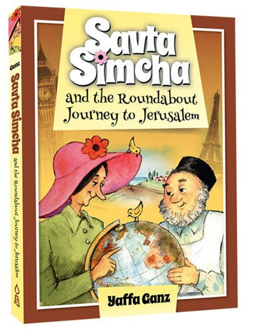 In this latest volume in the Savta Simcha Collection , Savta Simcha and Uncle Nechemya leave the little red-roofed house on Three Rimon Road in Jerusalem, and set off on a round-the-world trip to visit far-flung friends. With a bag full of special gifts, they go from Alaska to Australia, from mexico to Morocco, from Hawaii to the Eiffel Tower in France. And in each place, they bring a bit of Jerusalem to everyone they meet.