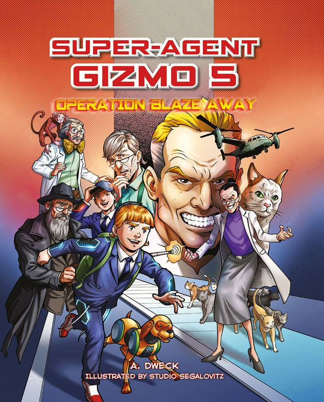 Gizmo and Morty team up against an all-new sinister enemy bent on stealing Gizmo’s most prized possession. Can Gizmo, with the help of Zeidy, uncover and stop the General’s evil plan? Will the Super-Agent team discover the whereabouts of Professor Egghead and Admiral Jones and why they’ve been spirited away? And most importantly, will Gizmo jump into Torah-true Emunah and realize that we don’t rely on kings, politicians, everyday people or even a robot dog, but only on Hashem? Put on your armor. Illustrated by Studio Segalovitz Pages: 76 - Dimensions: 12" x 9"