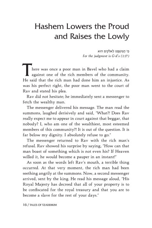 Wonderful stories from 2,000 years of Rabbinic literature and Jewish history, arranged by the weekly Torah readings. By G. MaTov; translated by Shaindel Weinbach; illustrated by Miriam Bardugo.