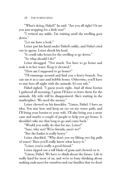 As the story unfolds, tensions between Jews and gentiles are strained as the frenzy of the Shabbesai Tzvi's movement grips the European cities and towns. But even as the drama plays itself out in distant Constantinople, trouble of a different kind is brewing in Pulichev. The Purple Ring, a clandestine gang of scoundrels, is plotting to accuse the Jewish people of Pulichev of high treason.