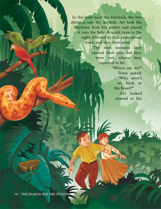 With its fast-paced plot by two bestselling children's authors, and its extraordinary illustrations by an award winning Hollywood animator, Search for the Stones takes Jewish children's literature to a completely new level. Search for the Stones will teach young readers Torah values even as it ignites their imagination. And it will teach them the wonders of reading, as it sends them on a quest they will never forget.
