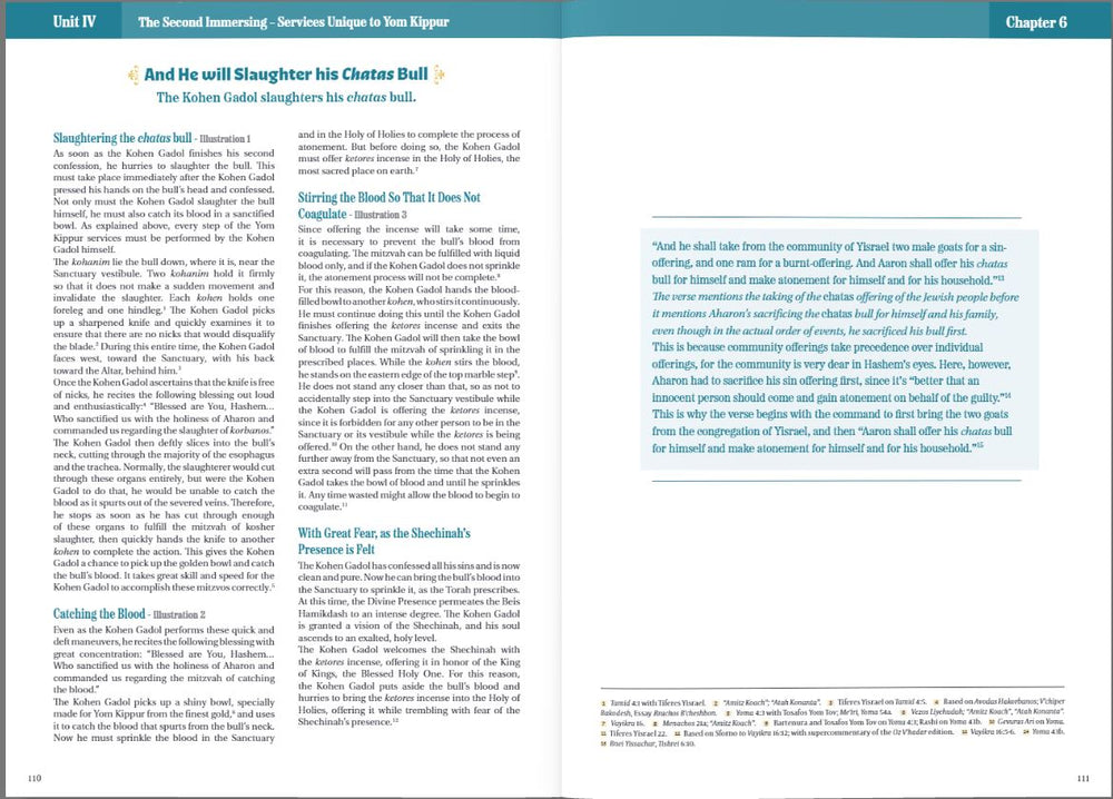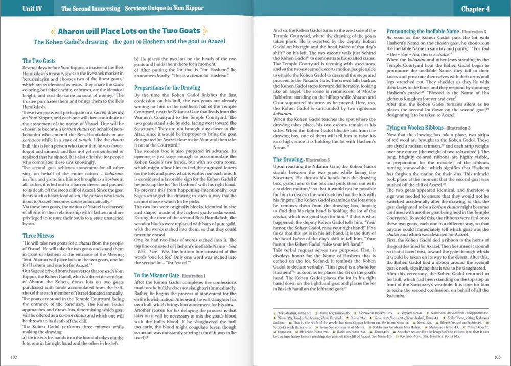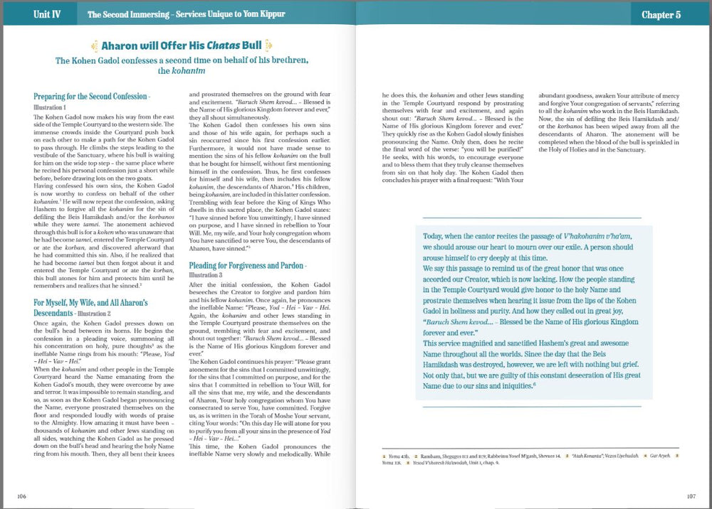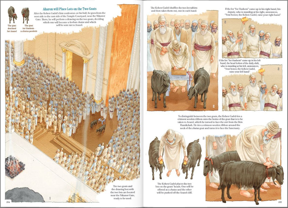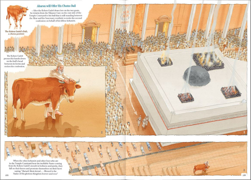 The book you are now holding portrays the service of the Kohen Gadol on Yom Kippur with stunning, detailed illustrations. As you read the text and study the images, you will be able to picture yourself standing in the Beis Hamikdash together with thousands of other Jews, carefully watching the Kohen Gadol perform the heart-stirring mitzvos of the day.
