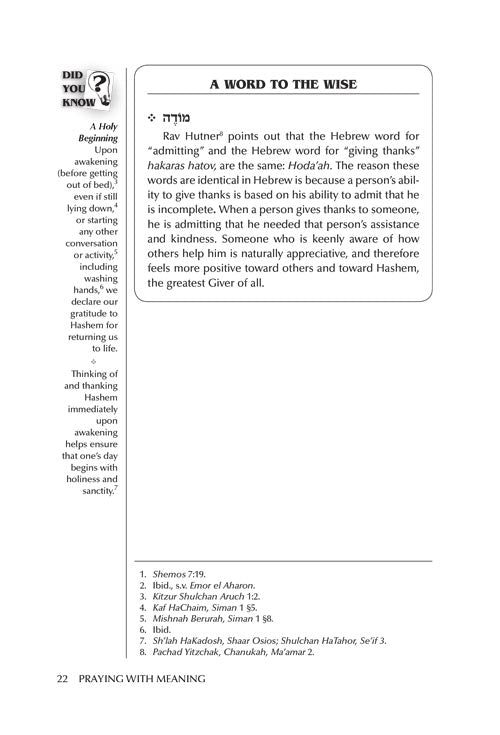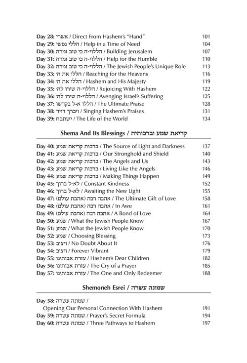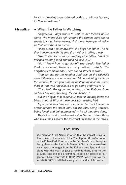 Praying with Meaning looks at the simple meaning of specific words in the tefillah, followed by an examination of the prayer's essential concepts. Then, with his genius for transforming lofty spiritual truths into practical action, the author guides us into visualizing images and finding strategies to bring these concepts into our daily routine. He weaves stories and parables to make clearer to us what the prayers are referring to, and shares important halachic information on each prayer.