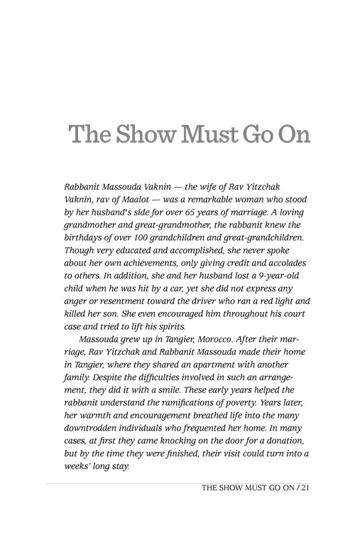 In one enthralling story after another, Rabbi Yechiel Spero enlightens us, touching our hearts, opening our eyes, invigorating our neshamos. He finds untold determination in the steaming buildings of wartime Shanghai and breathtaking hashgachah pratis on a Haifa street.