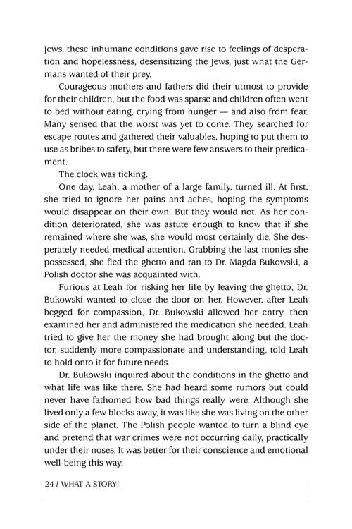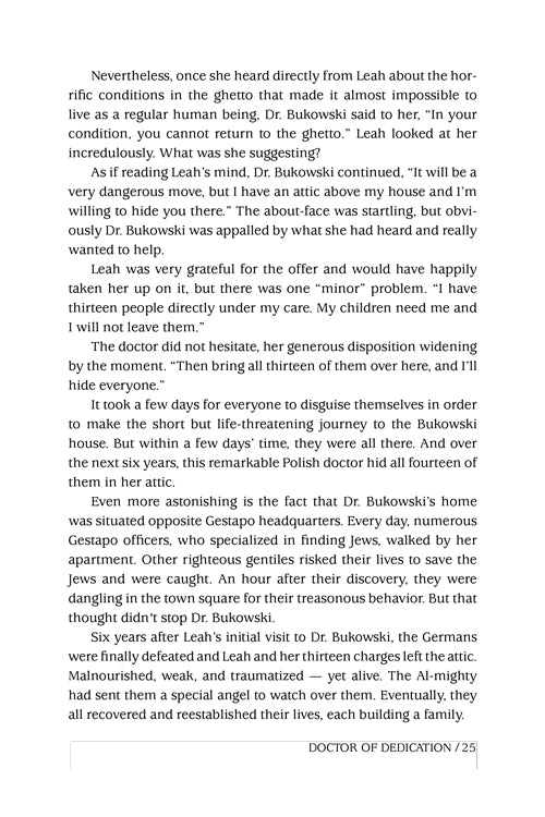 What heroism! For six years, a courageous mother hid fourteen Jews in the home of a kind Polish non-Jewish doctor -- directly opposite Gestapo headquarters ...