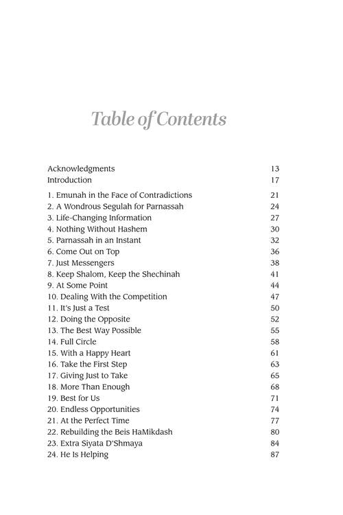 What is the correct balance between emunah and hishtadlus, human effort? What is David HaMelech’s segulah for parnassah? Can working truly be a part of our avodas Hashem? Through insights and stories, Rabbi Ashear shows us that if we add emunah to our efforts in parnassah, our struggles and challenges will instead become sources of happiness, tranquility, and endless blessings.