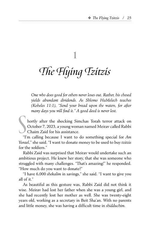 She gives her life savings to buy tzitzis for Israeli soldiers and ... miraculously! ... a pair of those tzitzis save countless lives.