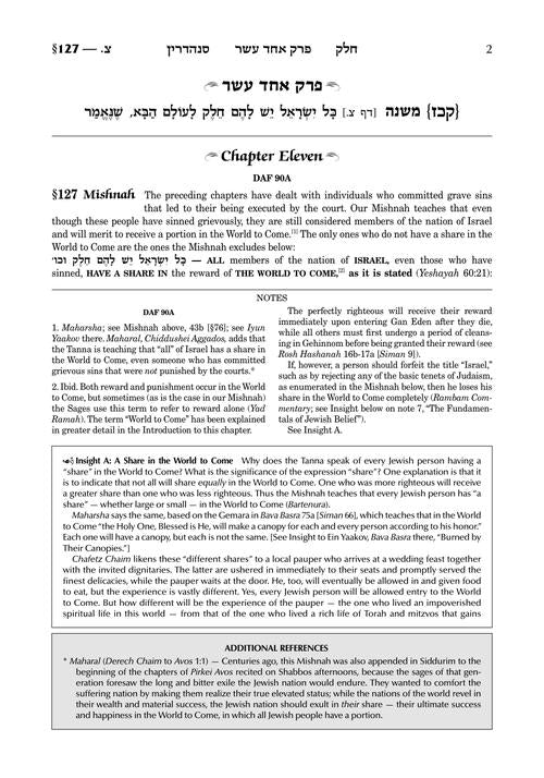 "Insights": This special feature illuminates various points in the text and brings out the many lessons and principles that are relevant in our daily lives. These Insights are drawn from a vast literature of various commentaries and Torah works, ranging from the Rishonim to the masters of Chassidus and Mussar.