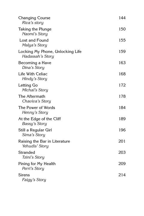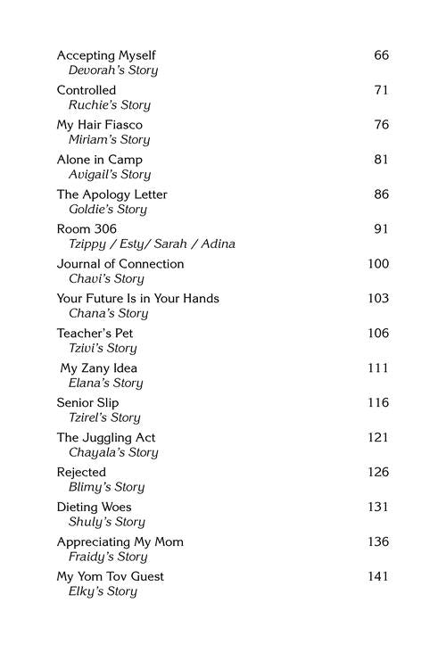 In these pages you’re going to meet some pretty amazing teens. Rivka, left in a wheelchair after a sudden accident, who discovers how to create a meaningful and, yes, happy life. Mindy, forced to watch her sister being slowly destroyed by an eating disorder. Devorah, sole introvert in a family that simply can’t understand her.