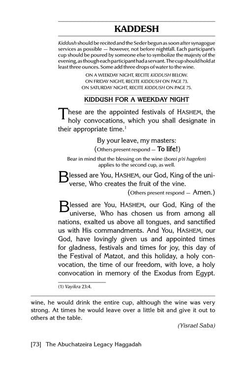 The Abuchatzeira dynasty. For over two hundred years, their holiness, practices, and teachings have shaped and uplifted the Torah world. Now, The Abuchatzeira Legacy Haggadah brings their wisdom to your Seder table with a fascinating and unique commentary based on the writings of this legendary family—along with mesmerizing stories of their extraordinary humility, compassion, and the miracles they performed.